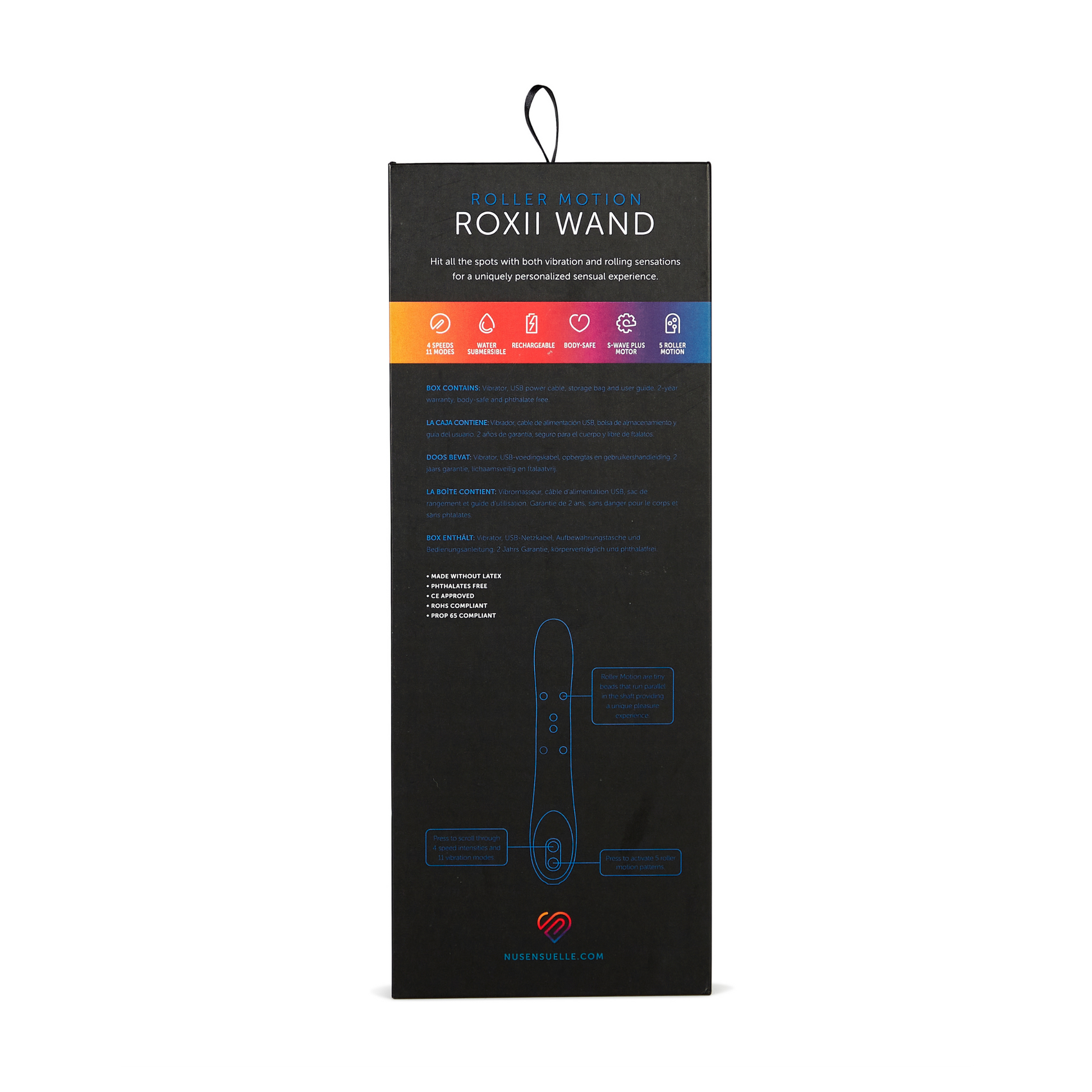 Traditional wands massage and stimulate the clitoris and other external sensory spots. However, Roller Motion Roxii Wand is nothing like its predecessors. Fashioned for internal and external play, this wand’s flexible tip and elongated handle make it the perfect pleasure product and personal massager for G-Spot stimulation. While Roxii’s kick undoubtedly stems from its 4 speeds and 11 modes–commanded our power level 6 motor–Roxii’s charisma lies within its independently-controlled roller motion feature. This flexible wand vibrator comes with a unique vertical bead motion, using these will make you feel sensation in more than one centralized area while still targeting the G-spot or C-spot.